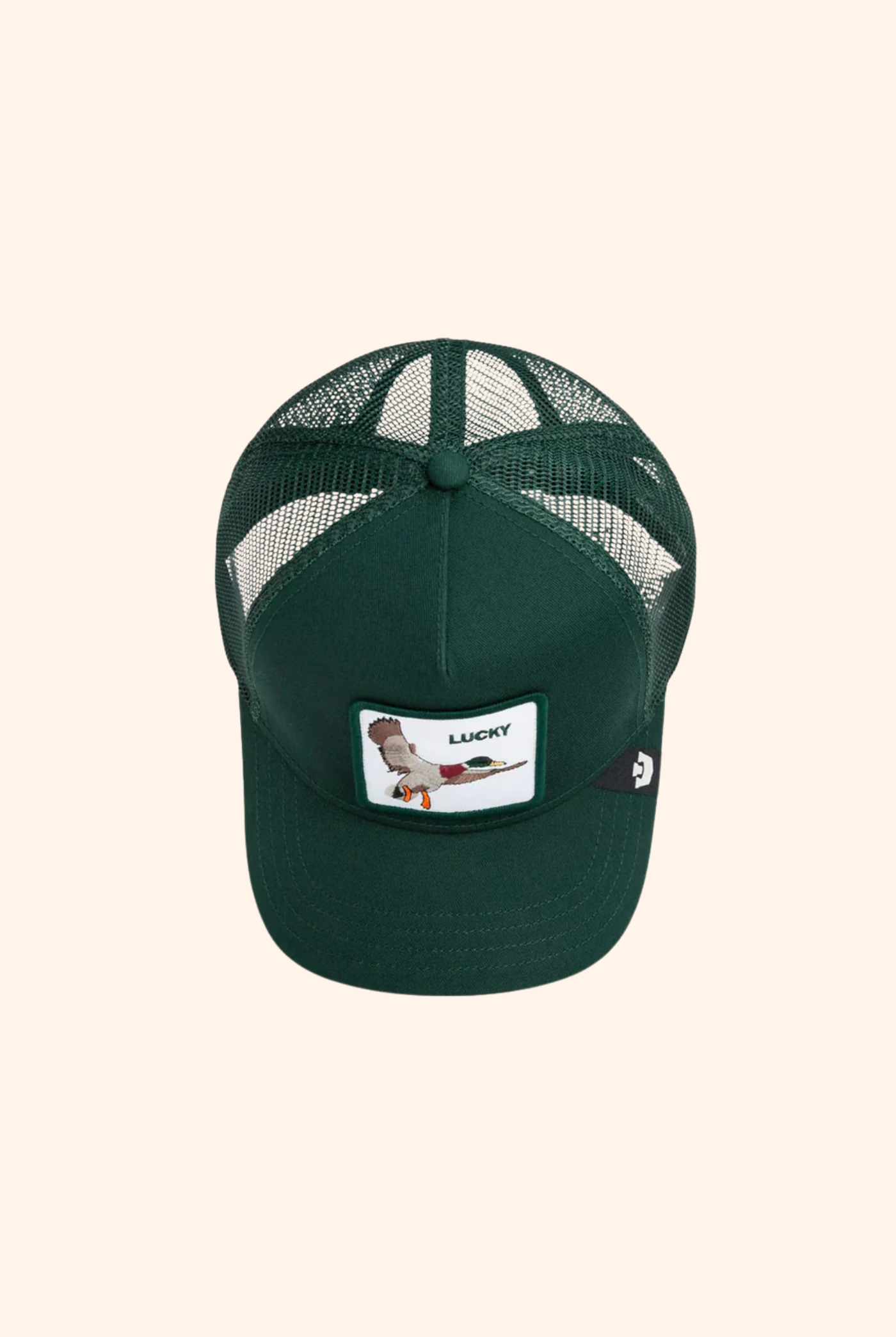 Forming part of the Goorin Farm Trucker Cap series, The Lucky Duck in Guard showcases the signature embroidered animal patch with a classic curved-brim OG trucker shape. Designed with a baseball-style snapback and an adjustable four-snap strap, it offers a sizing range of 55cm to 61cm, with 58cm as the centre fit. The cap is finished with a breathable mesh back to keep you cool in warmer conditions and a 100% soft cotton-twill sweatband for all-day comfort. Made from 57% polyester and 43% cotton, it balances durability with easy wear.